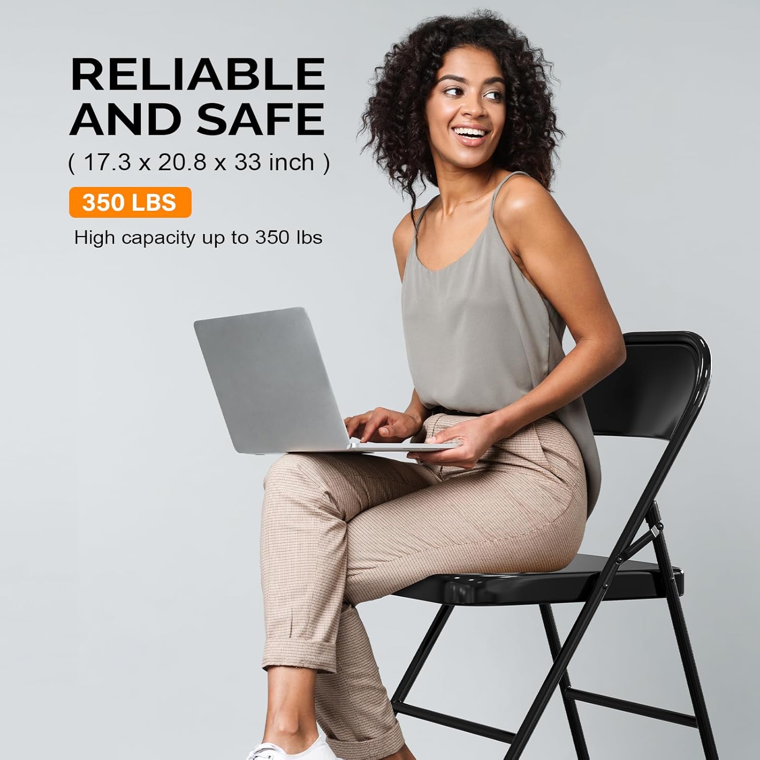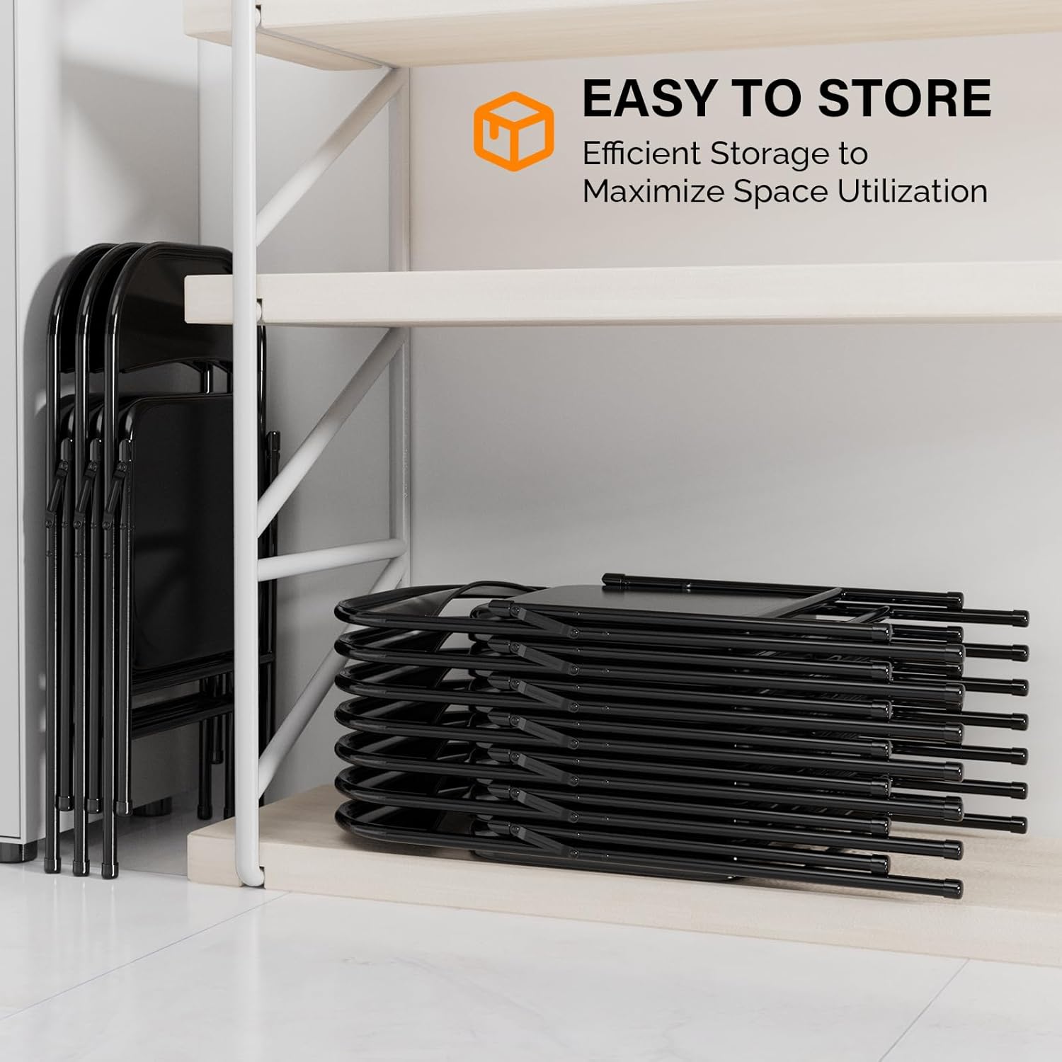 Folding Chairs All Steel Metal Frame, Capacity 51 lbs, Durable Portable and Versatile for Indoor Outdoor Use, Black, Set of 6