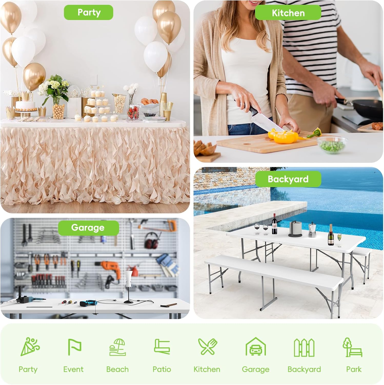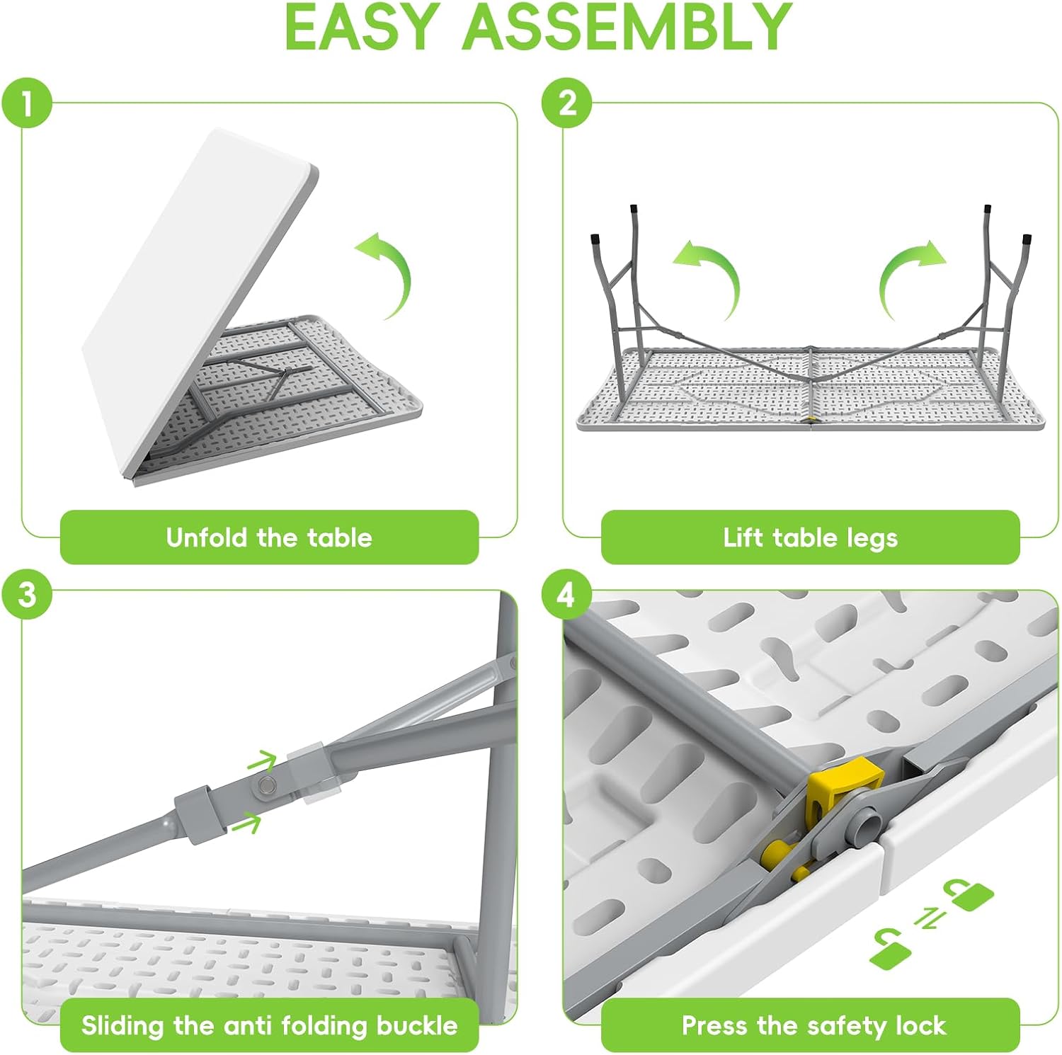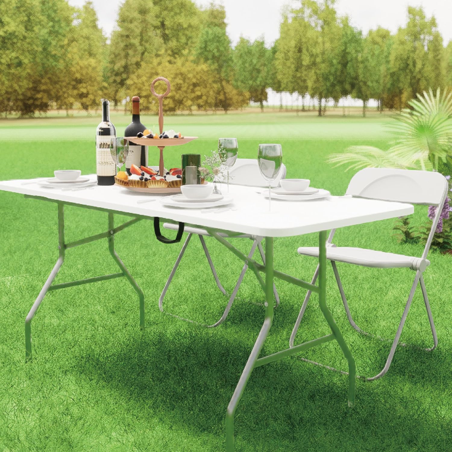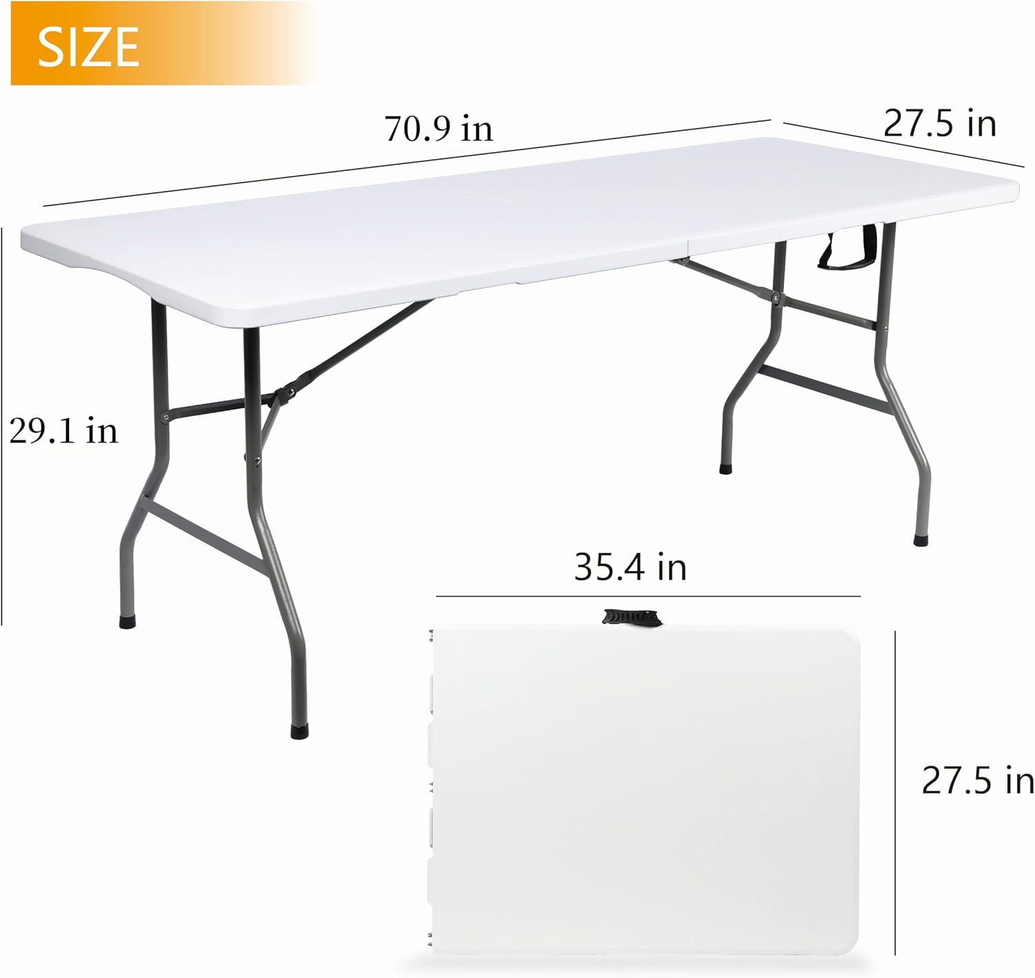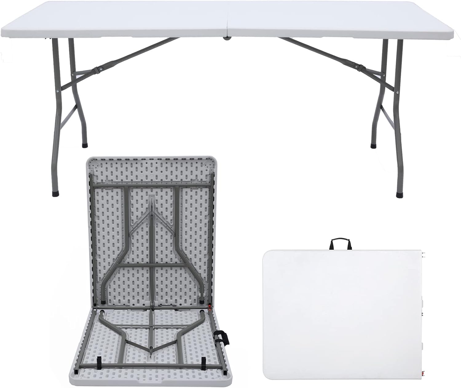 Folding Table 6ft Portable Heavy Duty Plastic Fold-in-Half Utility Foldable Table Plastic Dining Indoor Outdoor for Camping, Picnic and Party, White